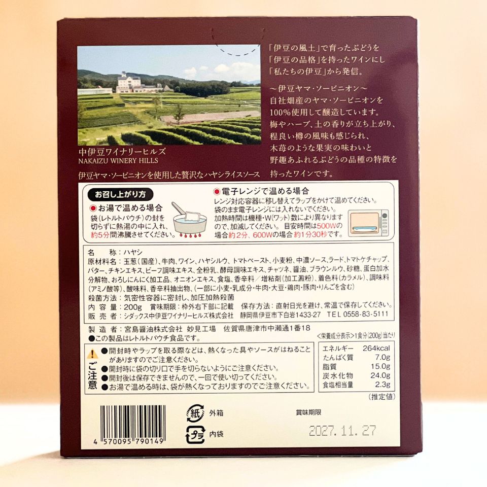 伊豆ワイン『伊豆ヤマ・ソービニオン』を使用した贅沢なハヤシライスソース。